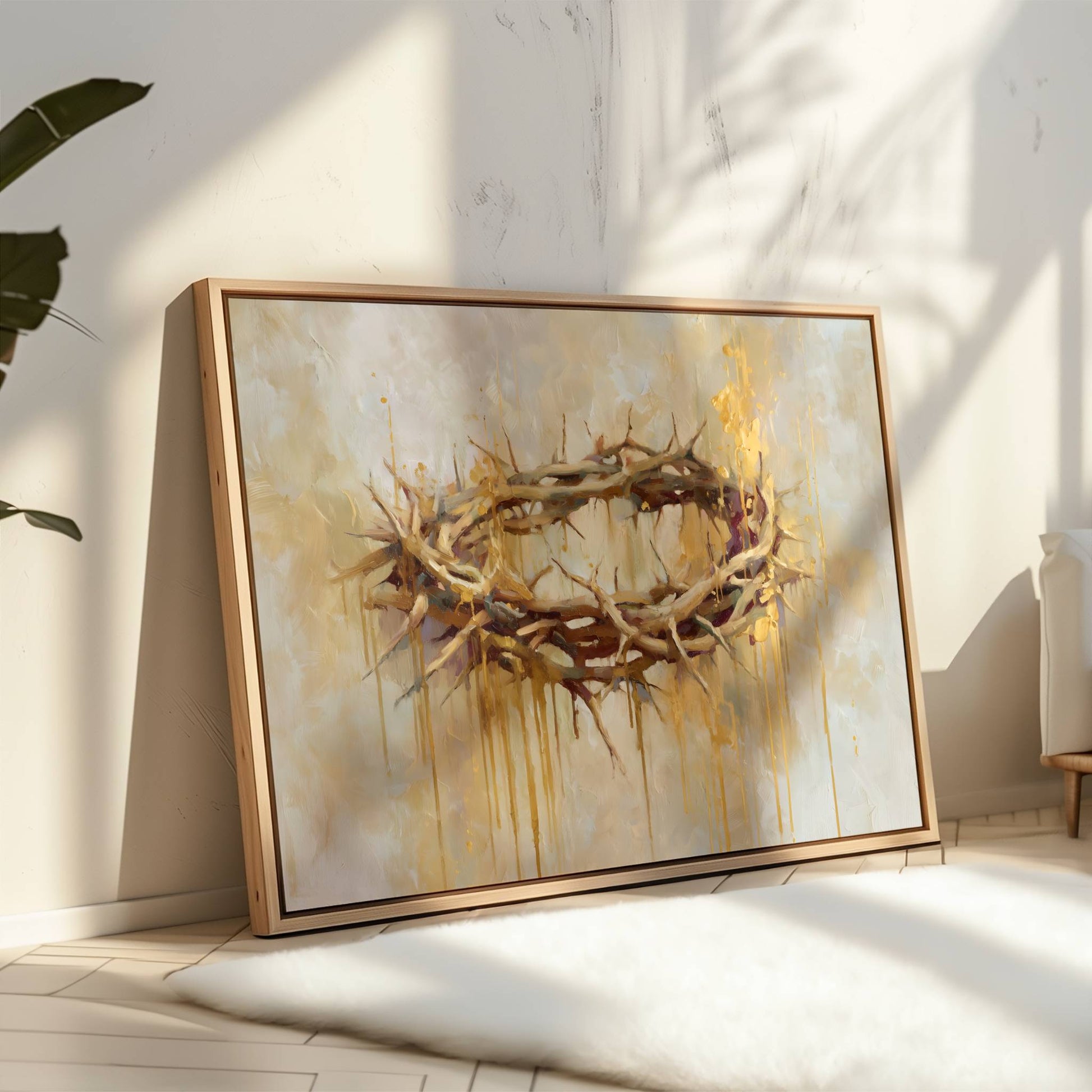For added elegance and contrast, choose an handcrafted wood frame in your choice of Gold, Black, Oak, White, or Walnut—each one designed to complement your canvas and elevate your home. Framing your piece brings a refined, museum-quality look that helps you create a Christ-centered home filled with warmth, beauty, and meaning.