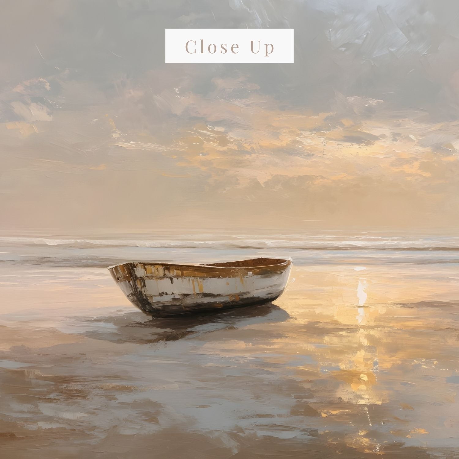 A lone boat rests quietly on the shore, bathed in the soft light of a new day. This artwork reflects the moment of calling—when Jesus said, “Follow Me, and I will make you fishers of men.” (Matthew 4:19)