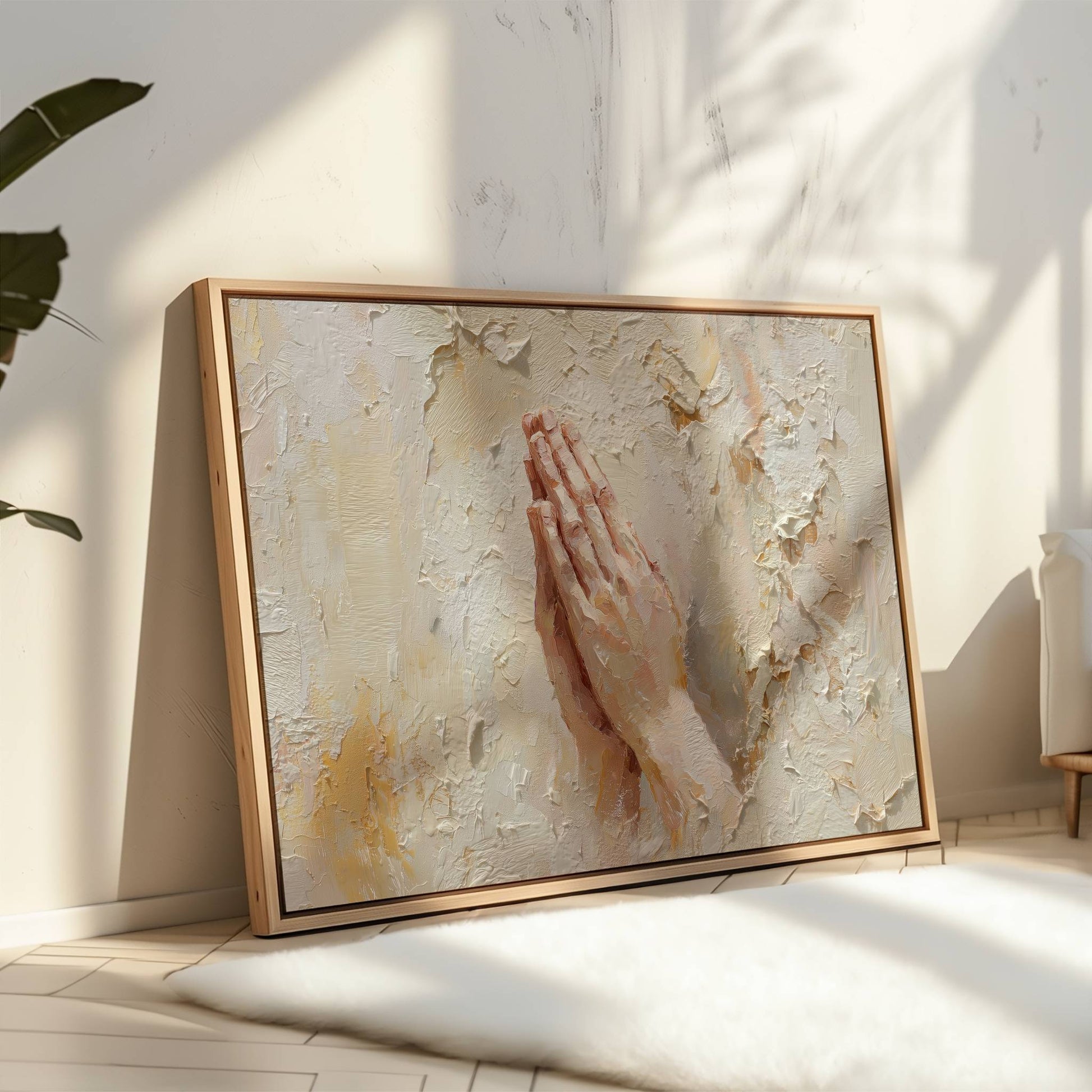 Perfect for prayer spaces, living rooms, or as a meaningful gift, this artwork anchors the truth that true strength is found when our hands are lifted in surrender to God.