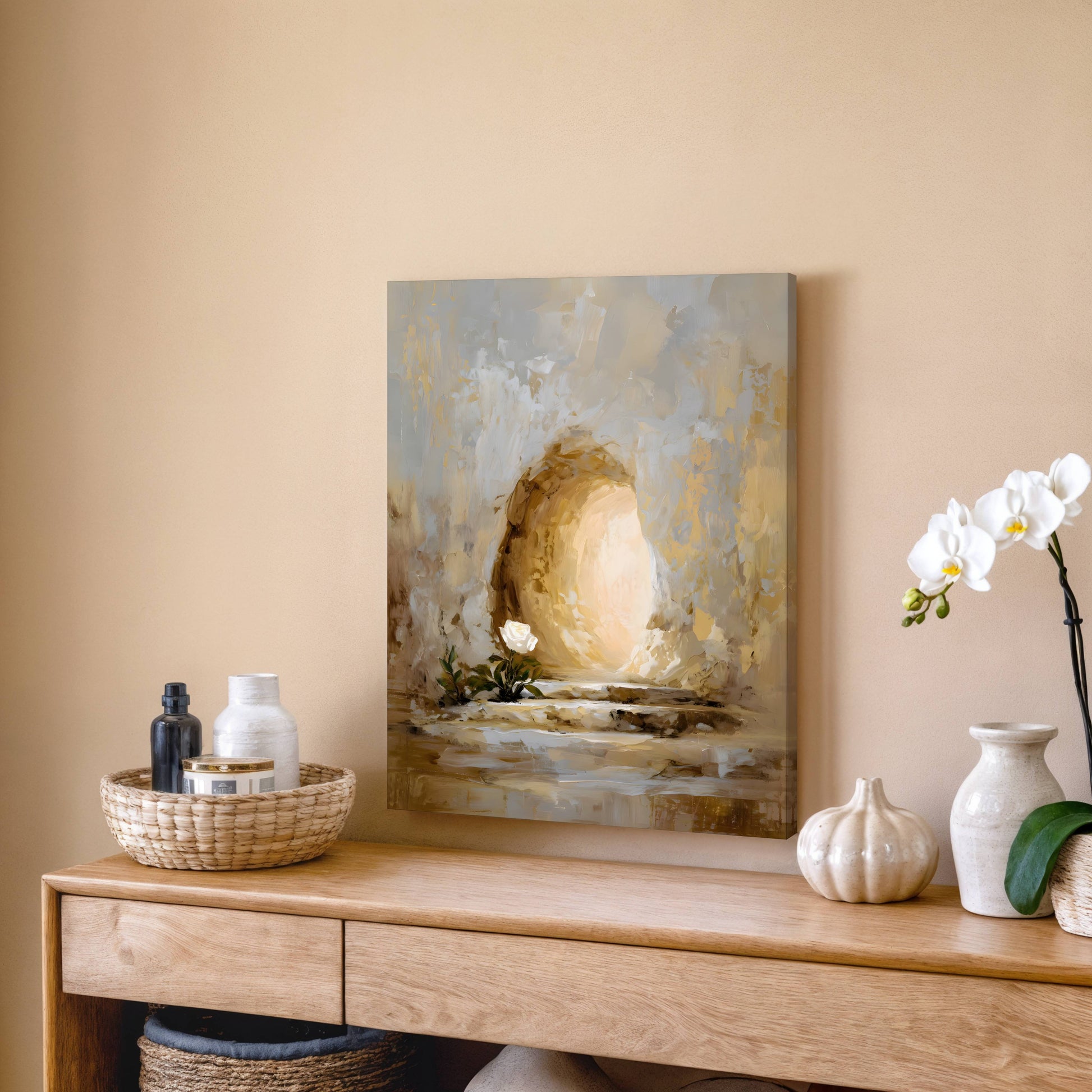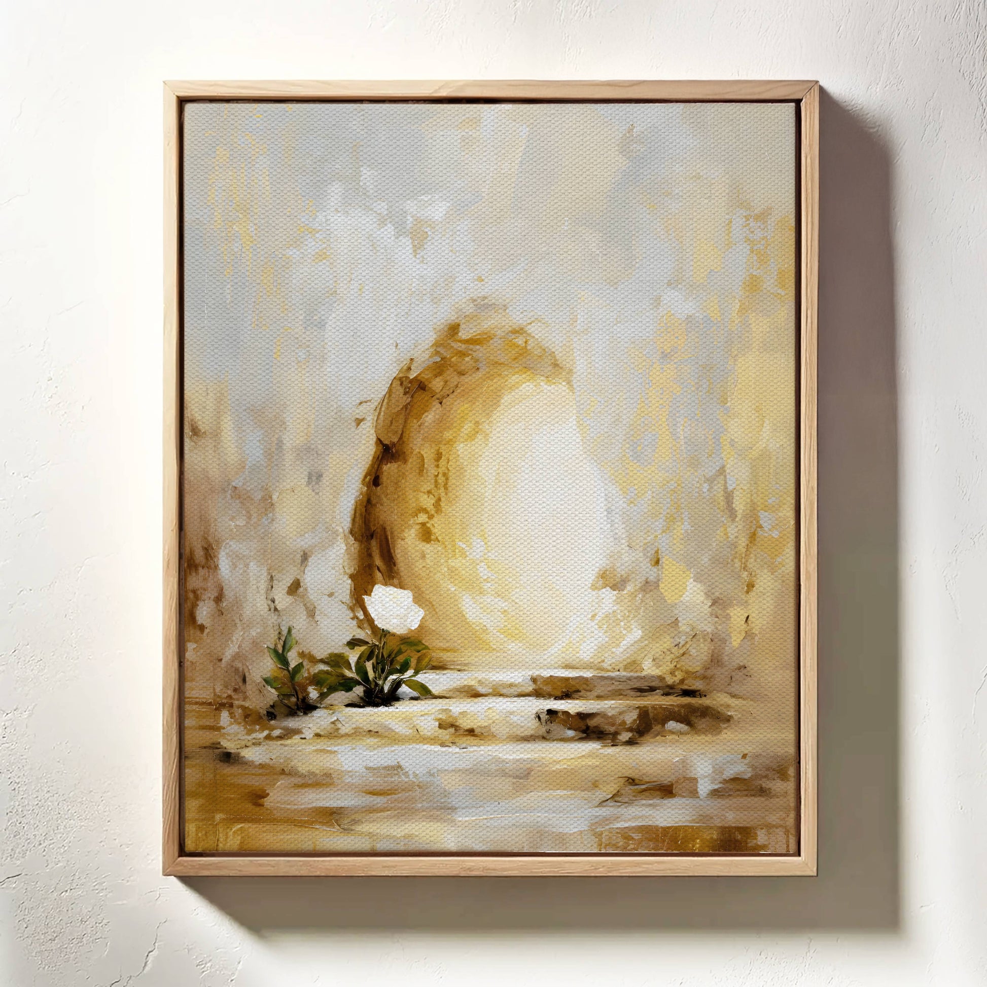 This artwork is inspired by the moment of resurrection, when light broke through the tomb and hope took root once more.