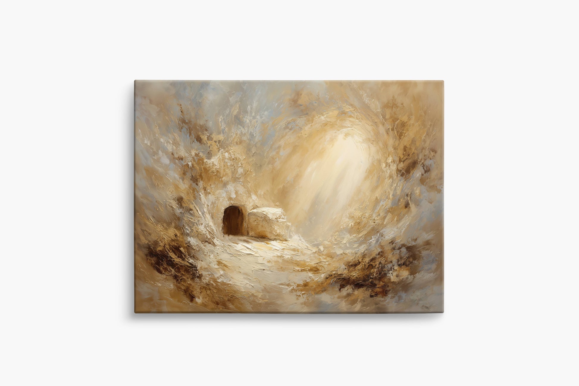 This artwork reflects the resurrection of Christ—the empty tomb bathed in light, declaring that death has been defeated and hope has risen. Inspired by Matthew 28:6, “He is not here; He has risen, just as He said.”