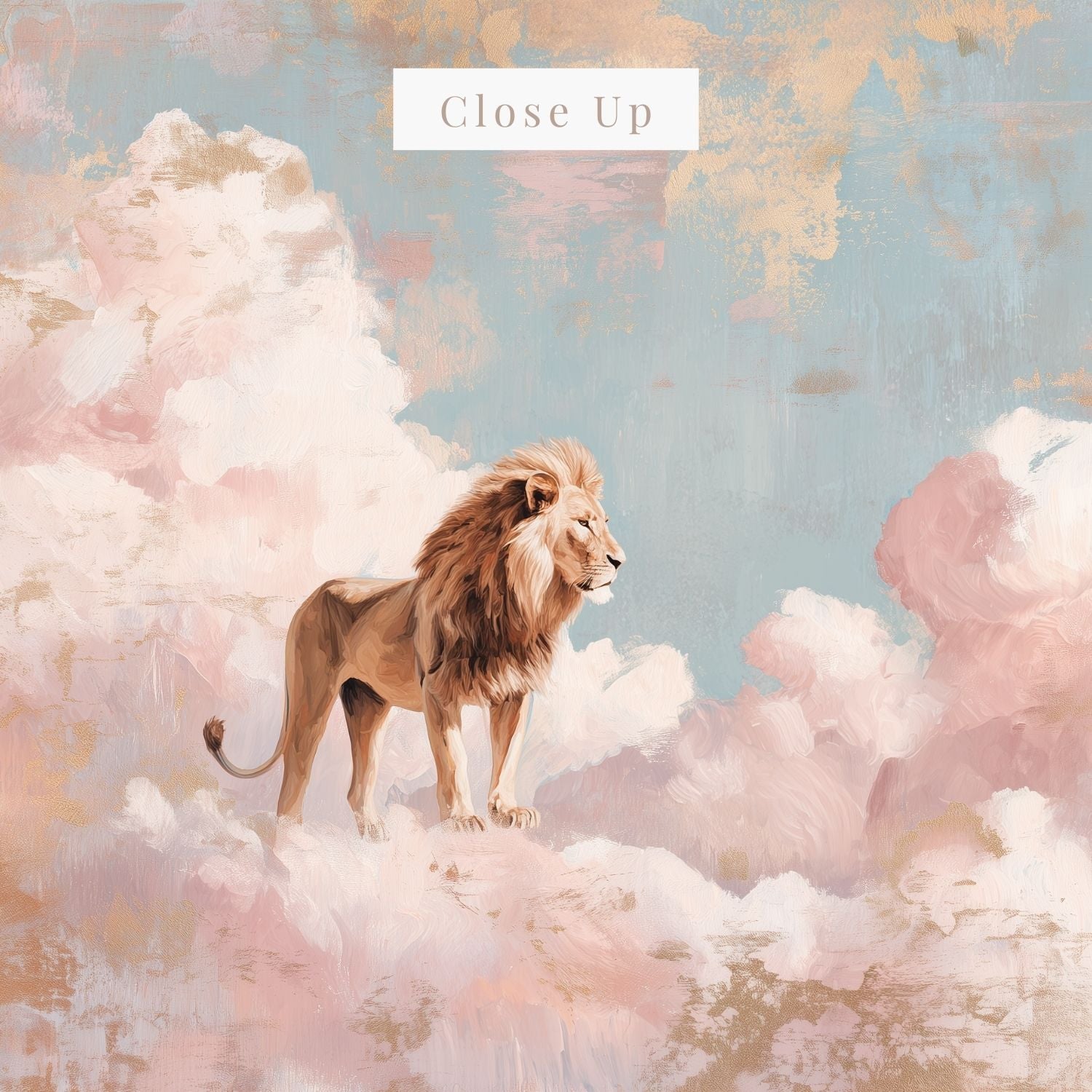 This powerful artwork portrays a majestic lion standing tall upon the clouds, bathed in heavenly light. A timeless symbol of Christ’s strength, kingship, and victory, the lion reminds us that Jesus reigns with power and authority, yet also with gentleness and love.