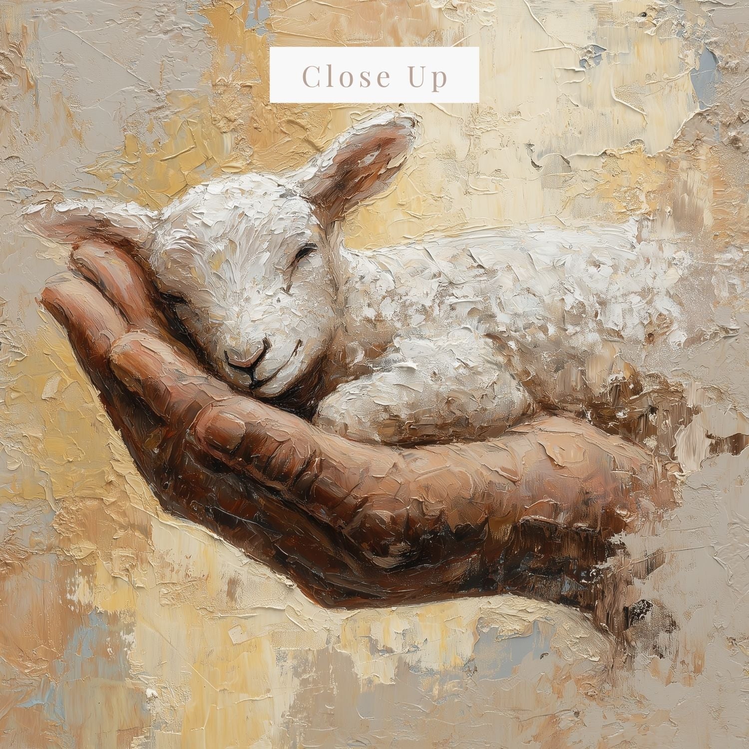 It is a reminder that God’s love is personal, relentless, and unconditional. No matter how far we wander, He never stops pursuing us. This piece speaks of being found, carried, and cherished in the hands of the Good Shepherd.
